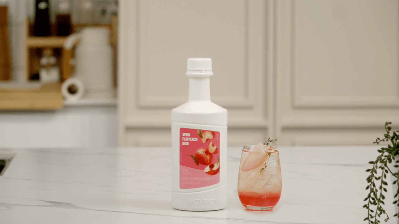 Naturetea Spanish Flat Peach Base uses flat Peaches from Spain, which have a less sour taste compared to regular Peaches and a stronger sweetness. By simply mixing with warm water, you can create a delicious fruit tea, allowing for a variety of flat Peach beverages with just one base.
