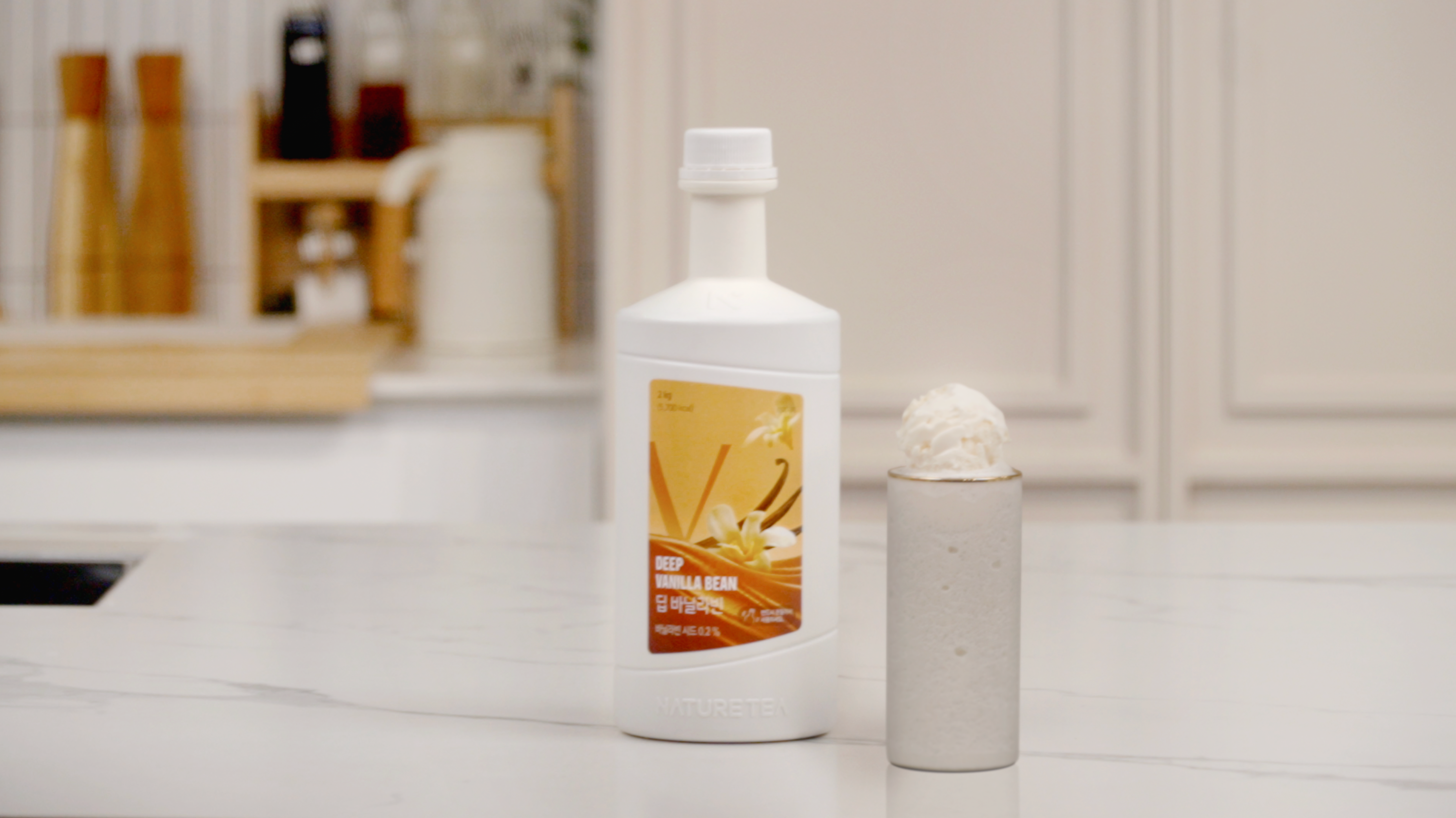 Naturetea Deep Vanilla Bean is filled with liquid vanilla bean seeds, adding visual sophistication to the drink. The rich body enhances the flavor of the beverage, enveloping milk and coffee smoothly.