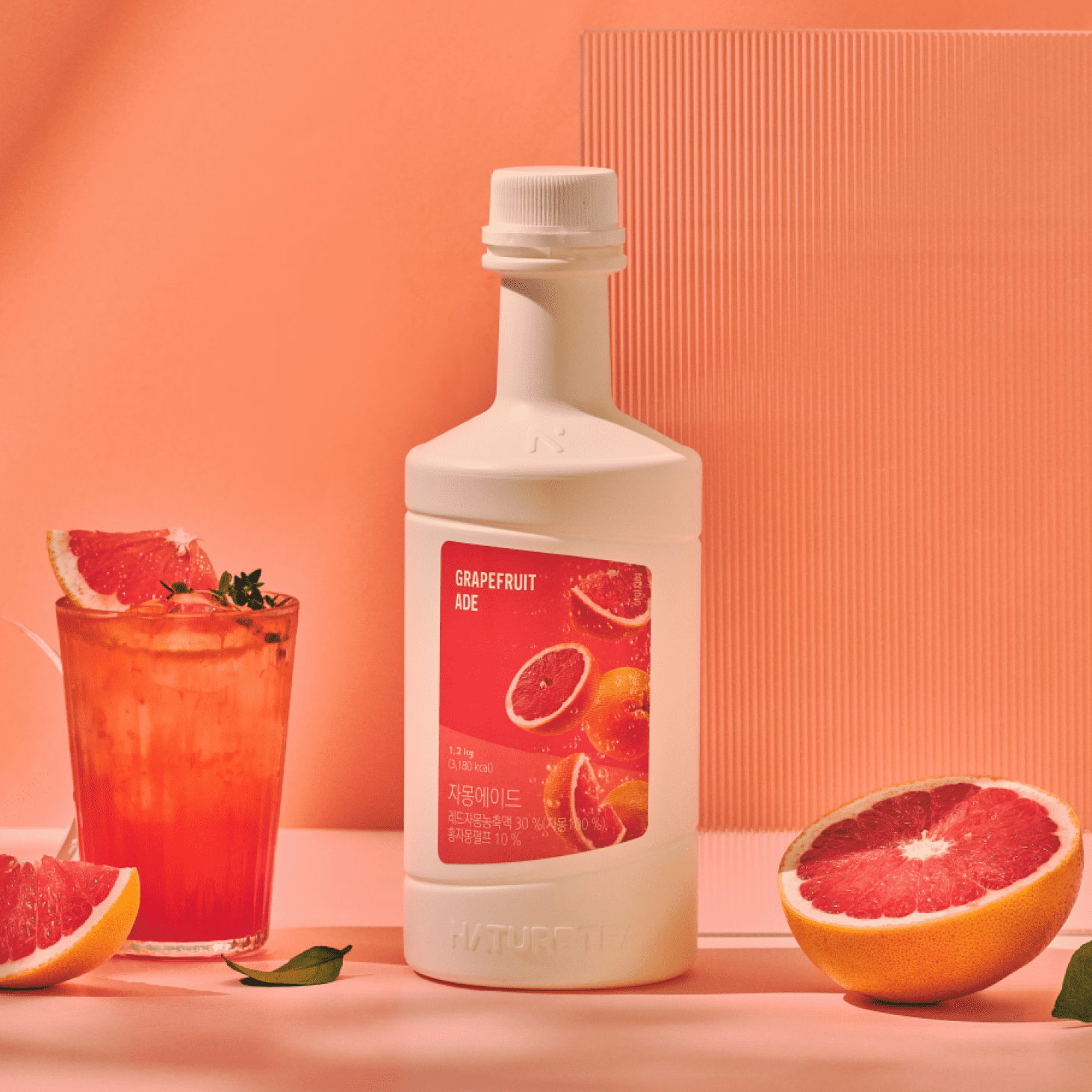 Naturetea Grapefruit Ade has a red color like grapefruit flesh. It still looks clear and red, even with grapefruit cells, making the ade feel refreshing.