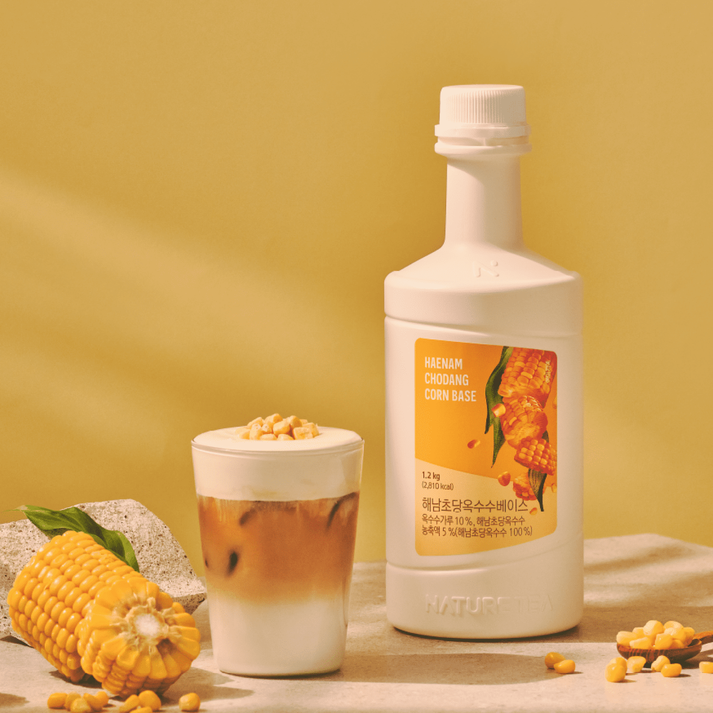 Naturetea Chodang Corn Base is made from Haenam sweet corn, which has a sweeter and richer taste than regular sweet corn, resulting in a sweet and nutty flavor.