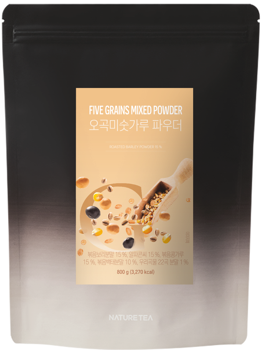 Naturetea Five Grains Mixed Powder is a cafe-specific powder for grain beverages, with more nuttiness and sweet umami than regular grain powders.