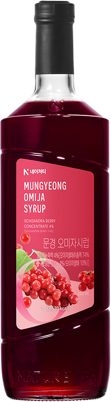 Naturetea Mungyeong Omija Syrup is made with Omija berries from Mungyeong, capturing a harmonious blend of five distinct flavors while preserving the fruit’s rich sweetness and refreshing tartness.