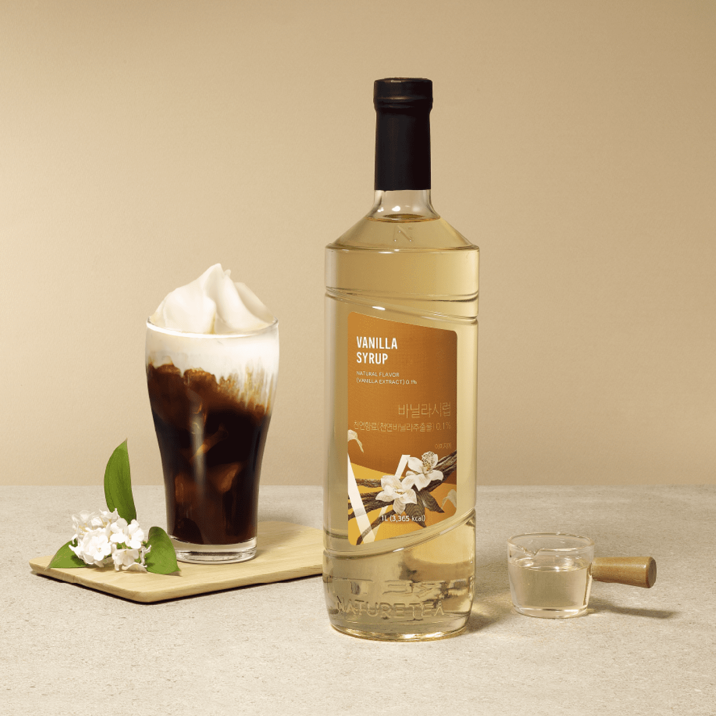 Naturetea Vanilla Syrup adds a luxurious and sweet flavor to your drink, softening the strong scent of beans with a deep vanilla aroma.