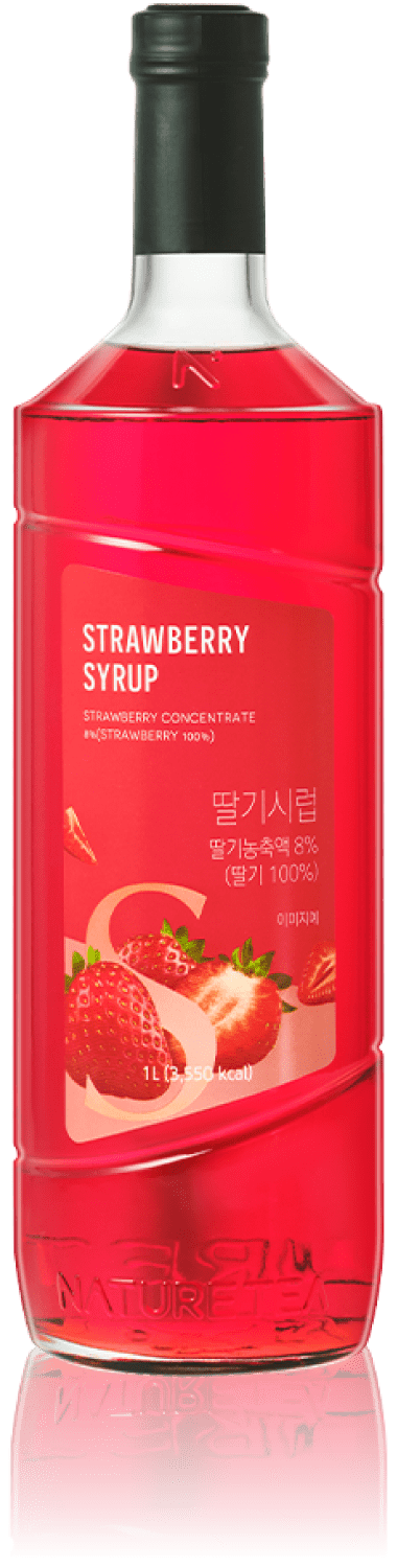 Naturetea Strawberry Syrup, with its high-contnet of quality strawberry concentrate, is characterized by the distinct flavor of naturally sweet and sour strawberries with the bright red color of ripe strawberries.