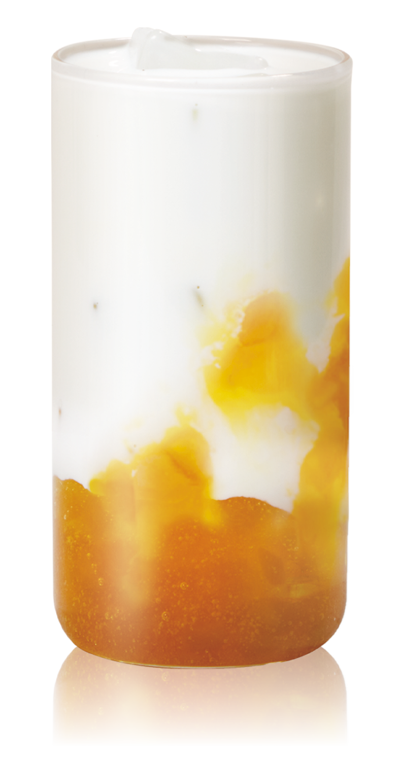 1. Pour 60g of Naturetea Plentiful Peach and 200g of milk into serving glass.