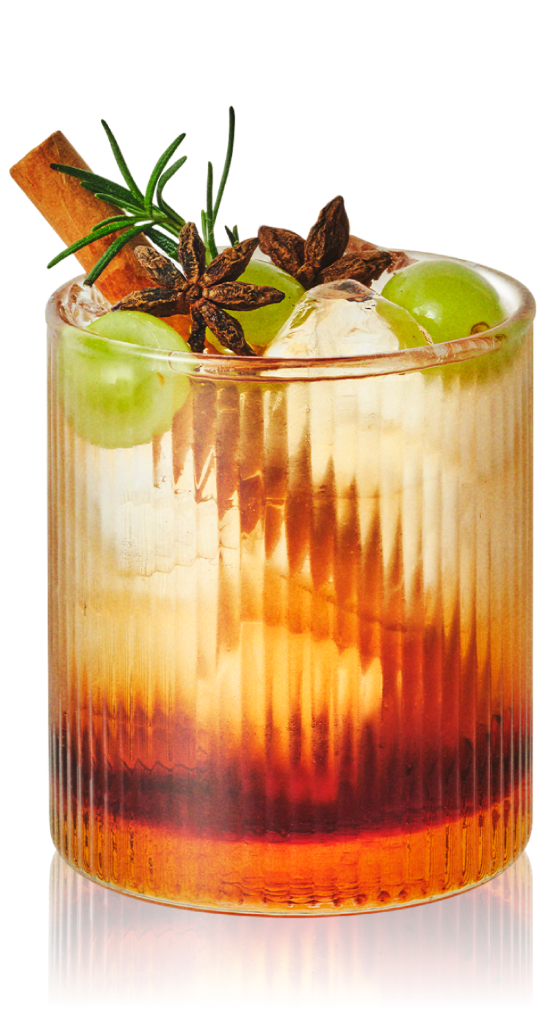 Naturetea Earl Grey Syrup, Naturetea Shine Muscat White Vin Chaud Base, Sparkling water, and Cinnamon Stick