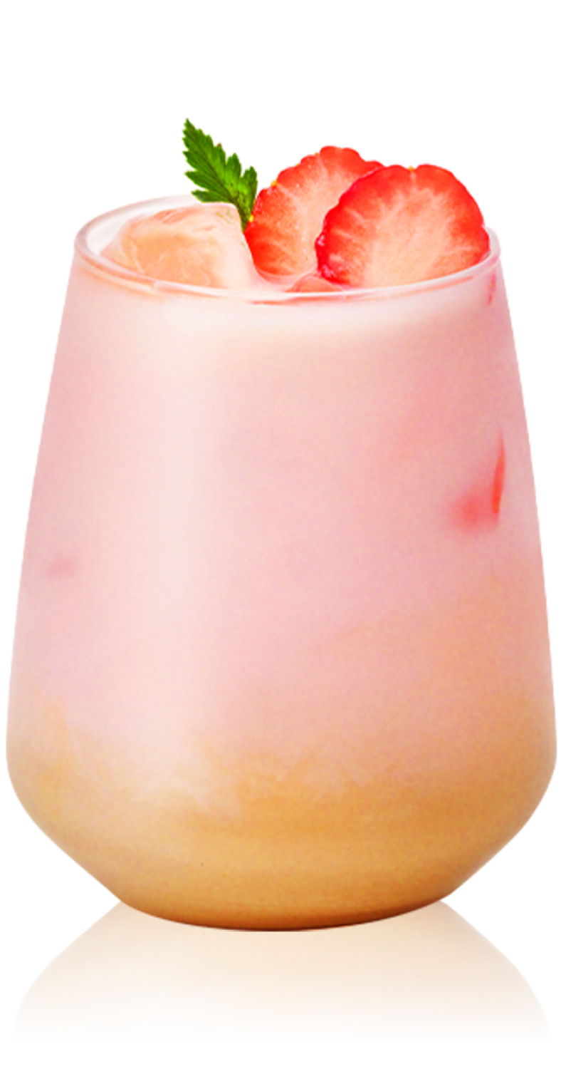 3. In a separate cup, mix 20g of Naturetea Strawberry Syrup and 100g of milk, then add to serving glass.